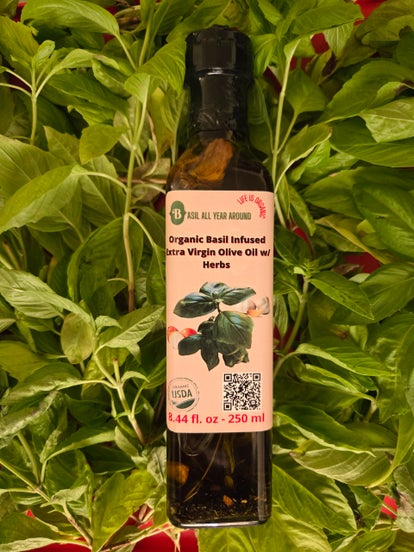 Experience the fresh, aromatic elegance of Organic Basil Infused Extra Virgin Olive Oil w/ Herbs. Cold‑pressed from the finest organic olives and infused with organic basil, garlic, onion, oregano, rosemary, unrefined pink sea salt, and peppercorns, this golden oil delivers a vibrant, herbaceous flavor that elevates any dish. Smooth, fragrant, and naturally rich in healthy fats, it’s perfect for drizzling, dipping, and dressing — bringing the essence of the garden to your table year‑round.