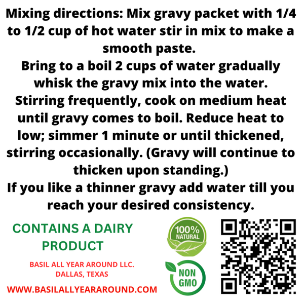 Our Organic Gravy Mix is a smooth, savory blend of organic flour, organic corn starch, organic onion, organic garlic, organic black pepper, organic chicken stock, organic beef stock, organic butter powder, and Himalayan salt. Crafted for depth and balance, this mix delivers a classic, homestyle gravy in just minutes — perfect for busy kitchens that refuse to compromise on quality.